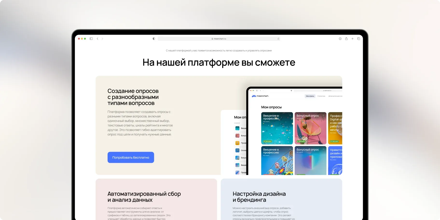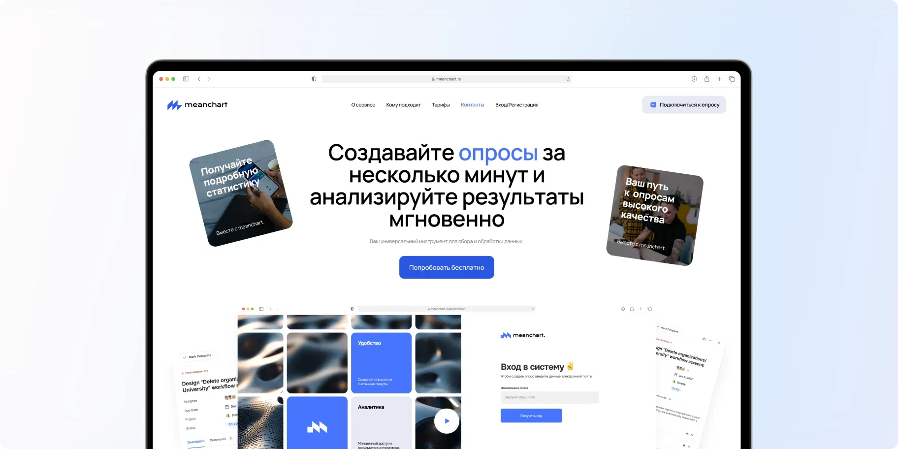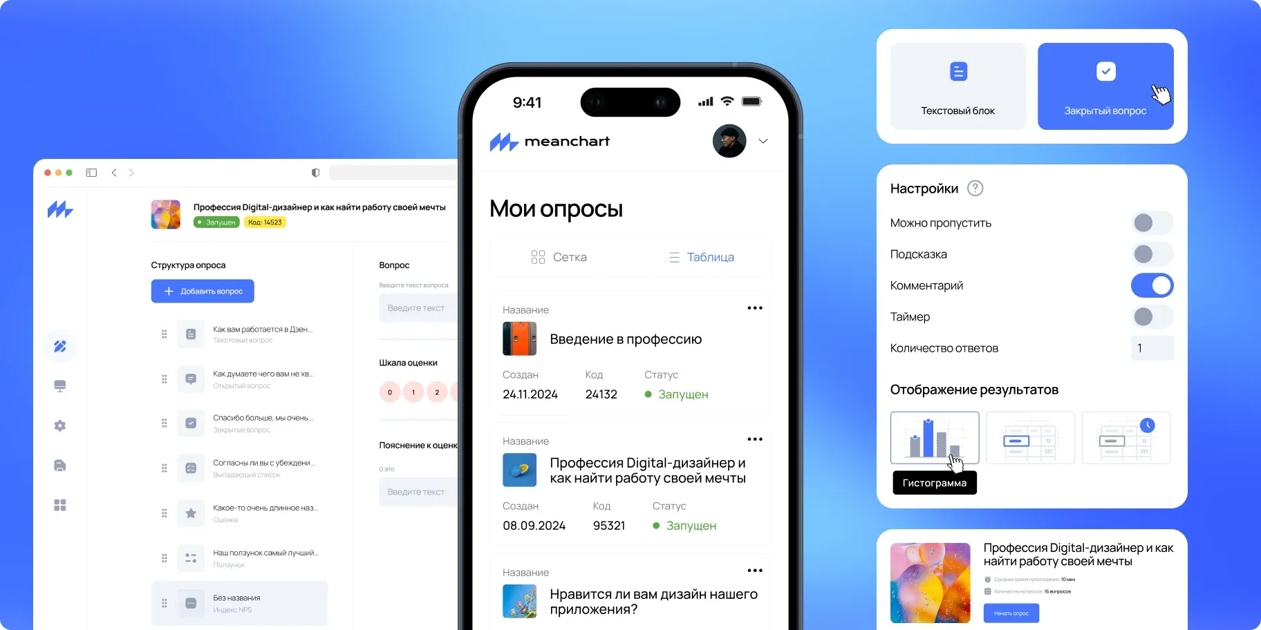 - обеспечивать интуитивную, понятную, адаптивную удобную навигацию как для создателей, так и для участников опросов.